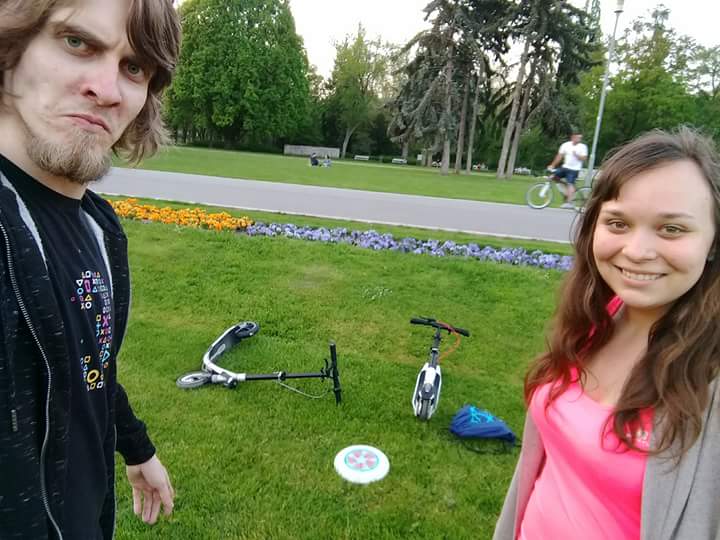Návrat z Norimbergu sme oslávili instantnou kúpou kolobežiek, ktoré sme hneď „bežali“ otestovať na Margit sziget v Budapešti.